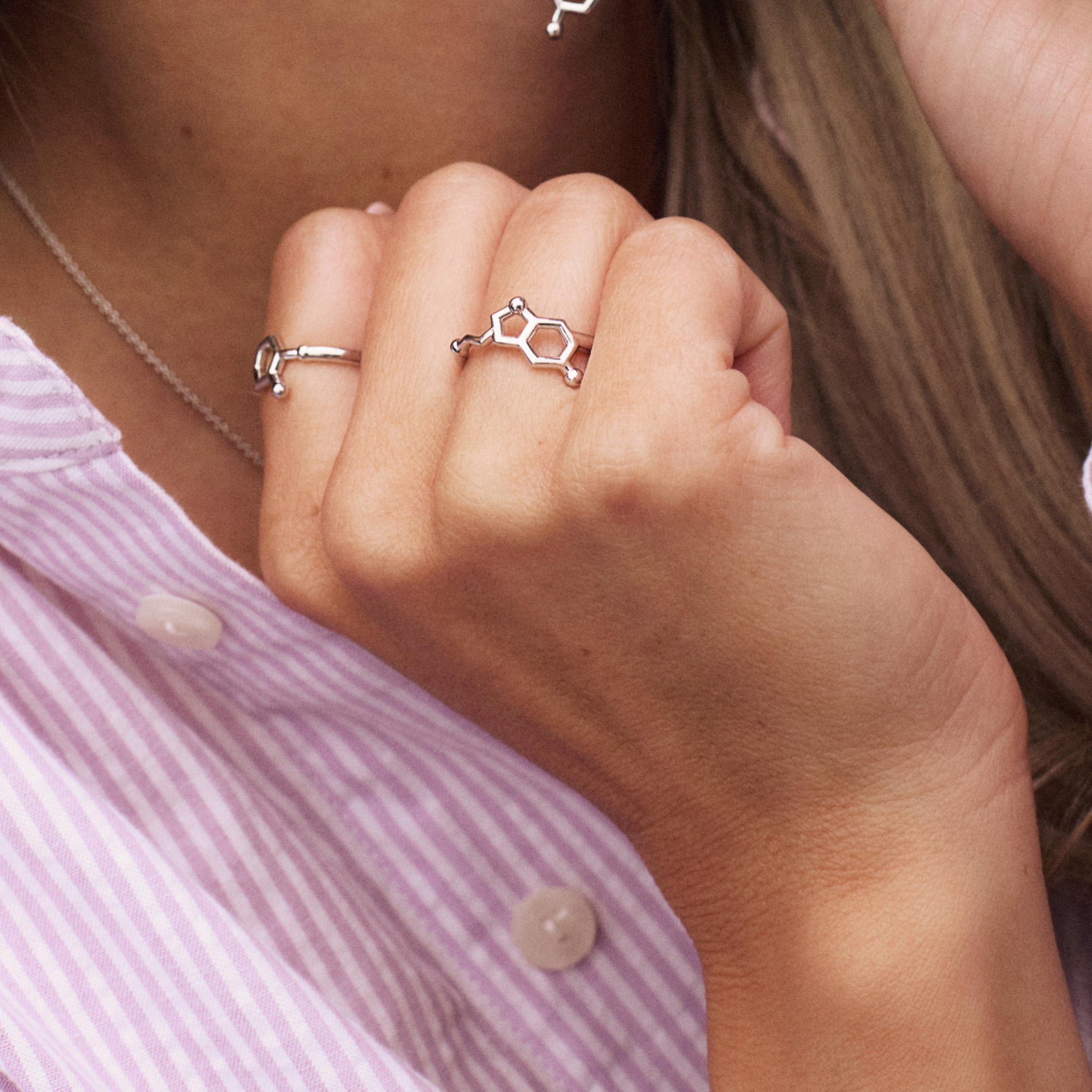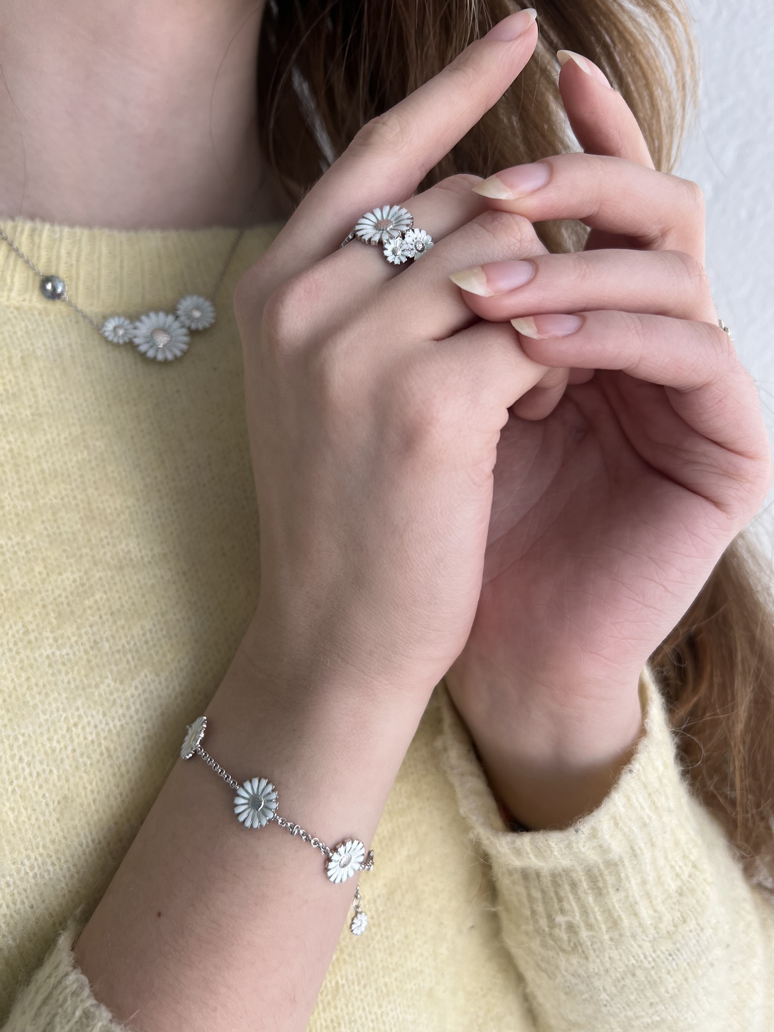 De to nederste bildene er fra Sandra Lyng X Pan som er et nytt smykkemerke, lansert i juni 2025. Sandra Lyng, norsk artist og coach setter fokus på mental helse, og stor del av denne smykkekolleksjonen hyller dette temaet.