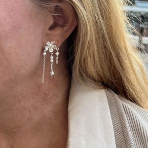 Susanne Friis Bjørner blomst ørepynt i sølv med perler