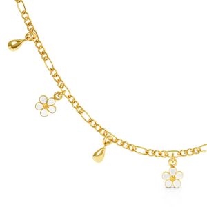 Liv kjede «Jordbærblomst» i forgylt sølv med hvite emalje blomster